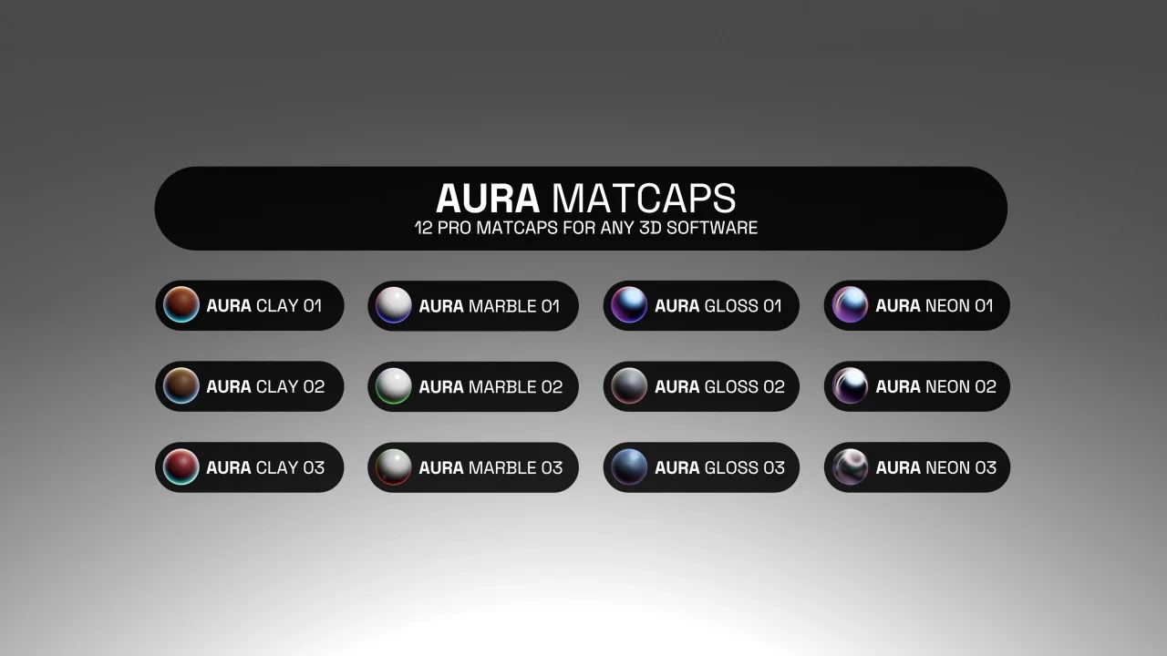 Get these 12 eye candy matcaps and work with 3D modeling, sculpting, animation and any other 3D scope the way you like!